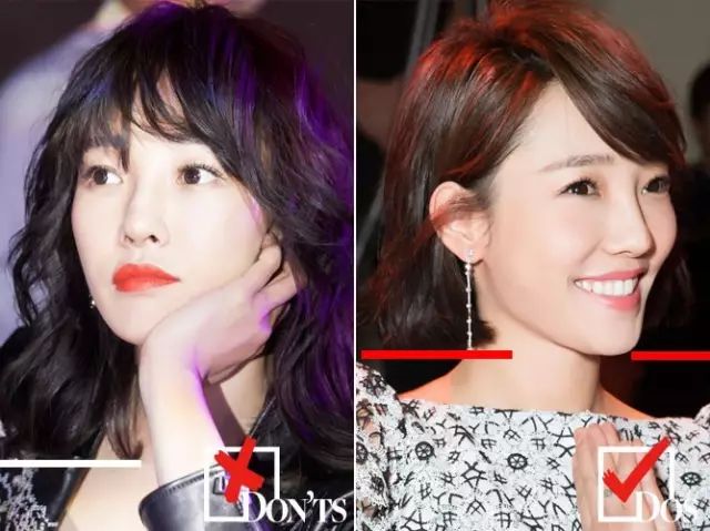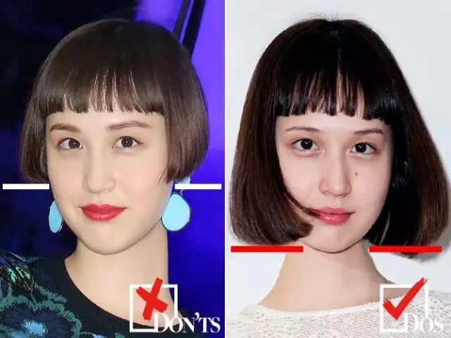 而要求发尾平行于下巴的“耳坠剪”则完全规避了挑脸型的问题,不仅如此还能帮你修饰脸型哦!