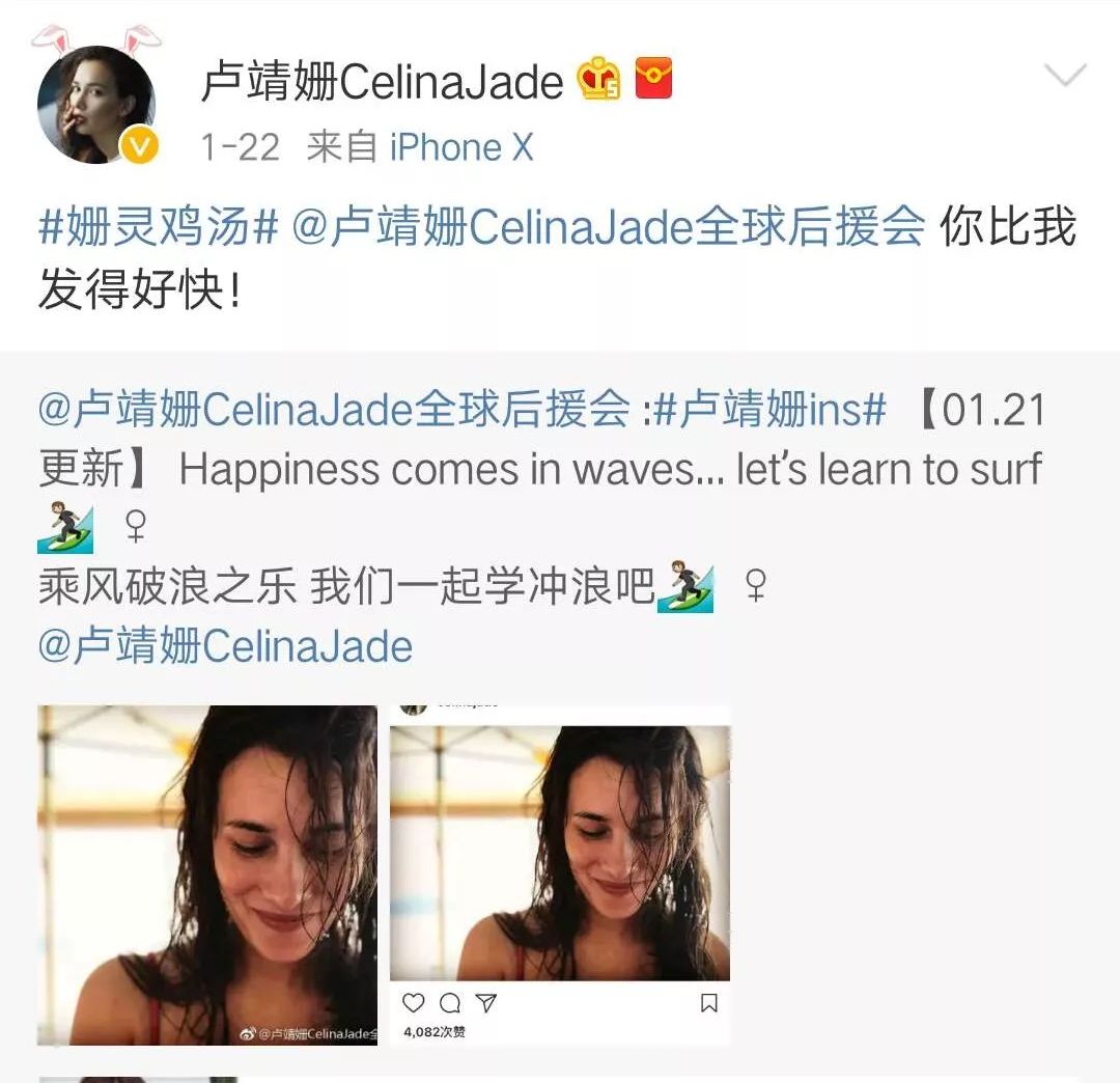 卢靖姗也是运动爱好者,这个从她的身材就能看出来。微博晒健身照也是经常的事。