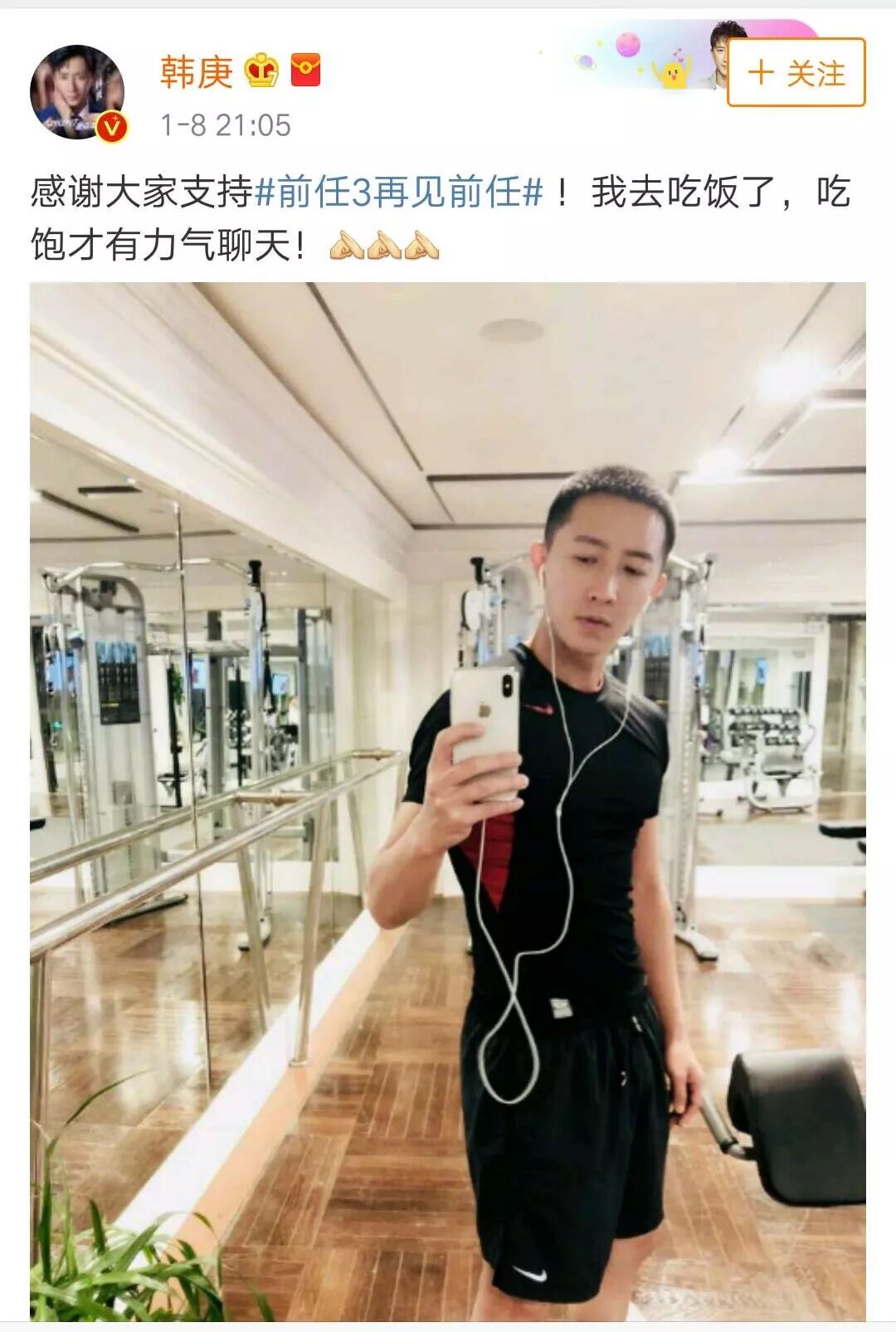 他的微博里不止一次晒过自己健身的照片,当年和吴昕作为好友组参加《极速前进》,吴昕也说,她自己运动不厉害,但她有搭档韩庚就够了。