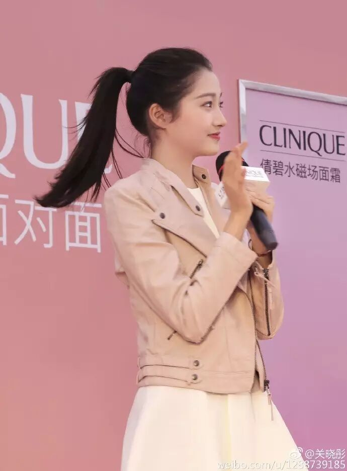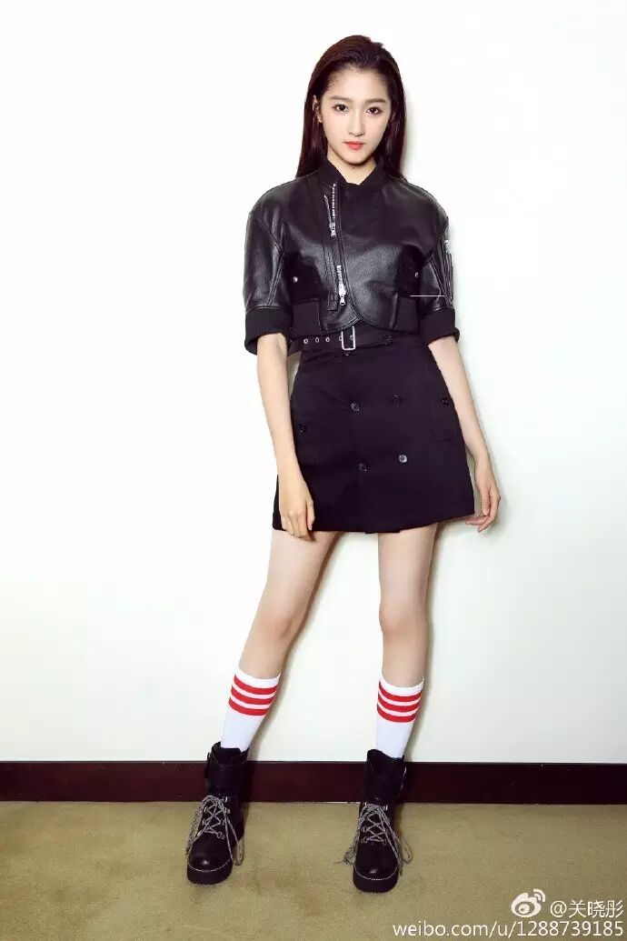 不同的颜色的皮衣外套能搭配出甜美和酷帅的少女风,关晓彤的衣Q还是不错的~
