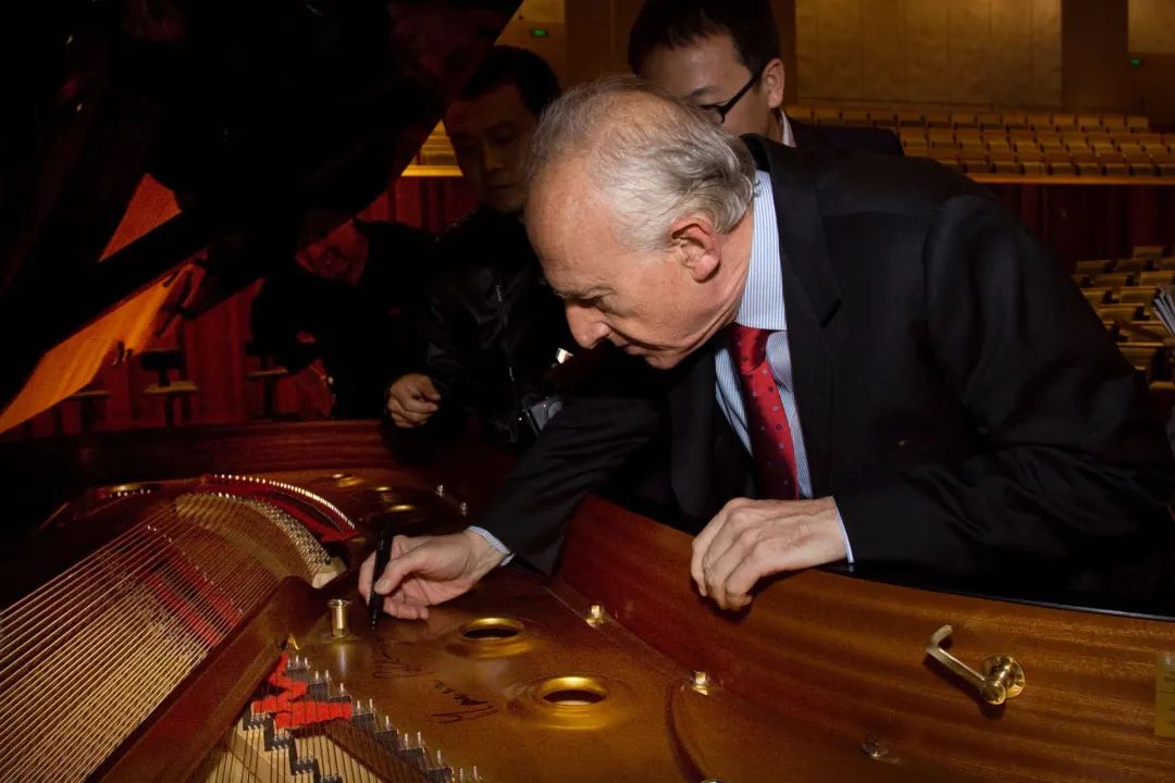 当晚,12次谢幕,过程达17分钟,音乐会在观众近乎疯狂的喝彩声中落幕。演出结束后,波利尼轻抚着这架与他缘分不浅的钢琴,深情地在琴骨上签下了自己的名字。2010年、2012年,大师又连续造访大剧院,奏响的都是这架施坦威。