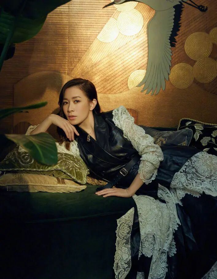 拼接元素一直是比较潮流,通过两种不同面料或不同色彩展露出女生更时尚更高调的感觉。佘诗曼这次选择的服装就夸张了一点,用蕾丝直接拼接了皮质,皮质是一种显酷显帅又显经典的面料,而蕾丝主要体现出的是高贵与女人味儿,把这两种元素结合在一起,让整个人看上去既帅气又性感,既个性又大气。