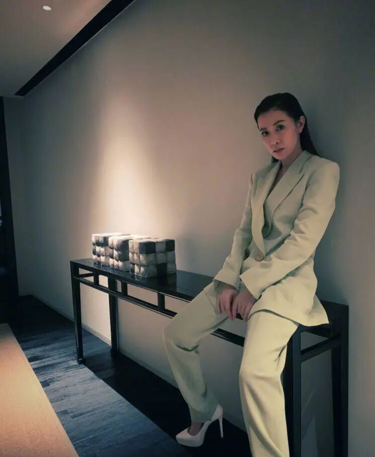 经典西装穿在身上,可以通过不同的内搭来秀出女生的时髦感。佘诗曼选用了颜色较浅的淡绿色西装套装,直接选择中空的方式,分分钟撩人于无形。配上白色的高跟鞋,厚底的防水台更能将身高拉长,将头发一丝不苟的全部梳向脑后,干练帅气又经典霸气。