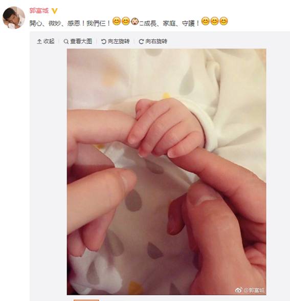 之后的一段时间俩人都比较低调。直到上个月22日,郭富城在微博晒出自己女儿的照片,开心地承认当爸。天王也在事后表示自己一定会把女儿当公主一样宠爱。