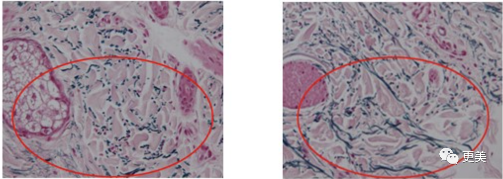 治疗12周后,真皮浅层排列规整的弹性蛋白和胶原纤维取代了原先的弹性组织,从而产生持续紧肤效果。