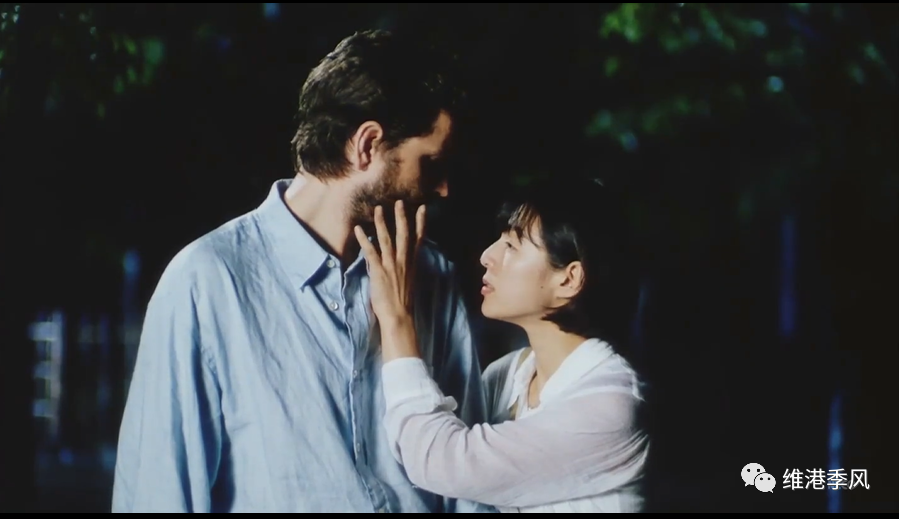 男主人公带着京子看风景,给她讲他们在哪里,讲眼前所见,有树,有路,还有鸟的叫声,甚至带到到小酒屋吃铁板烧唱K。