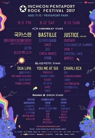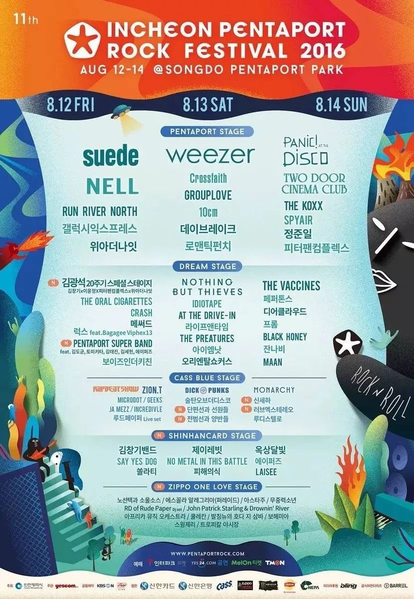 仁川Pentaport摇滚音乐节已经有十多年的历史了,其前身是Tri-port音乐节。2006年更名为Pentaport音乐节。它的名字源于音乐节的五个主题:音乐(Music)、激情(Passion)、环境友好(environment friendly)、DIY和友谊(friendship)。