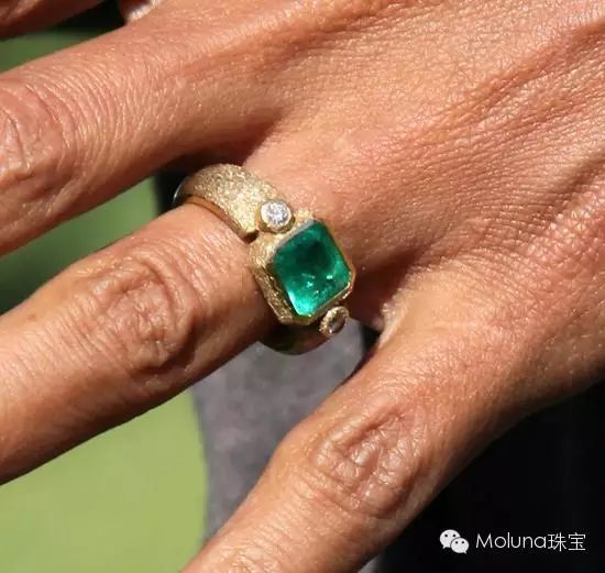 Jason Sudeikis向Olivia Wilde求婚时选择了一枚复古感钻戒,主石外围绕着一圈细碎的祖母绿宝石,之所以挑选这枚是因为新郎觉得这枚戒指像新娘的眼眸。
