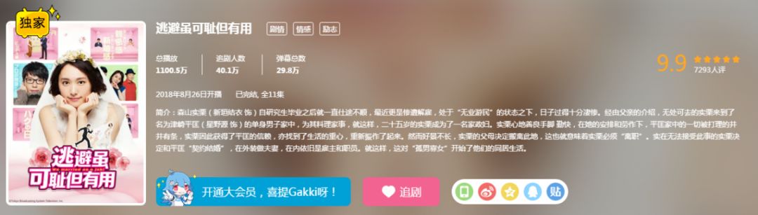 想必很多人都是通过《逃避虽可耻却有用》这部剧了解到星野源的,这部剧于2016年火遍日本,在国内也是有着超高的人气。国内知名视频网站哔哩哔哩在2018年引进这部剧的时候,甚至由于观看人数过多导致B站服务器卡顿,评分也高达9.9。