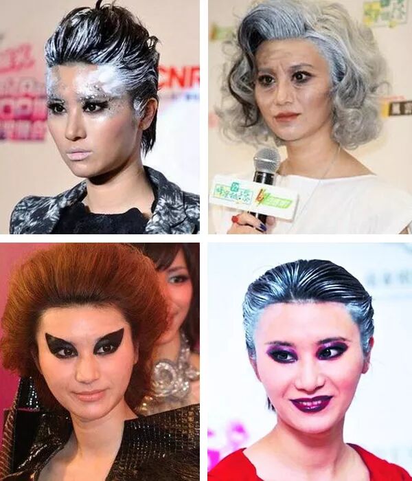 没有颜值没有背景的她,只能用造型来提高大众对自己的关注度。