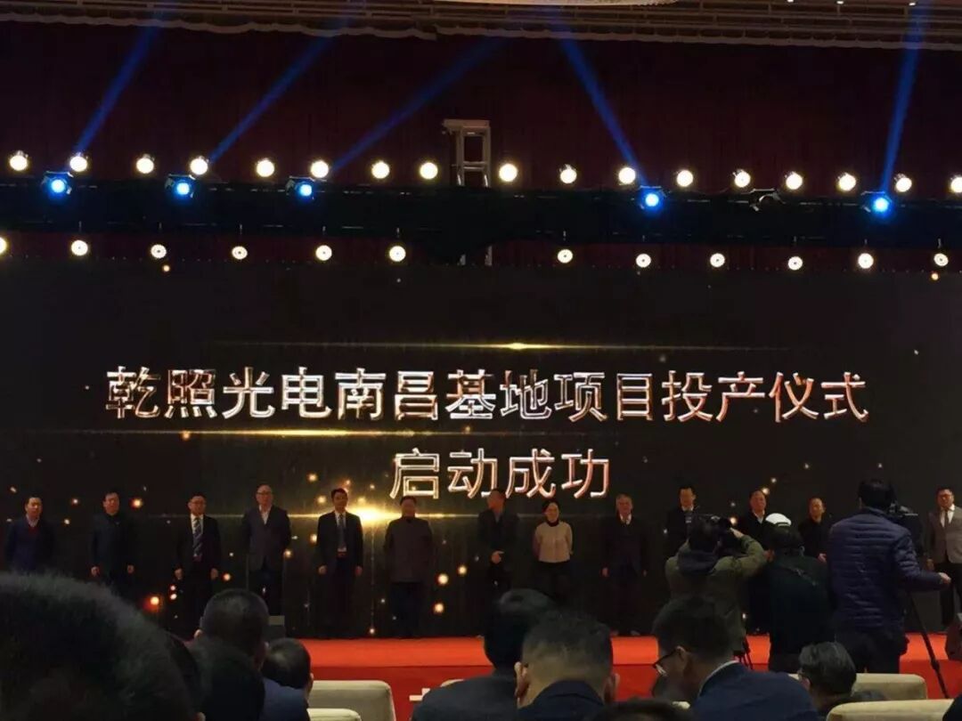 12月7日,南昌市光电产业推介会暨乾照光电南昌基地项目投产仪式在南昌举行,该基地项目总投资50亿元,用地600亩,其中一期投资25亿,年生产能力可达960万(折2寸片)蓝绿外延芯片。这意味着国内红黄光LED芯片龙头乾照光电,在蓝绿芯片上再下一城,稳居全色系LED第一梯队。