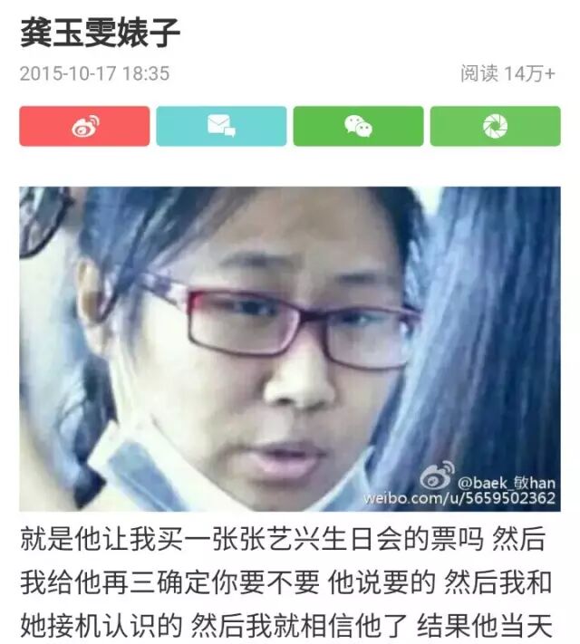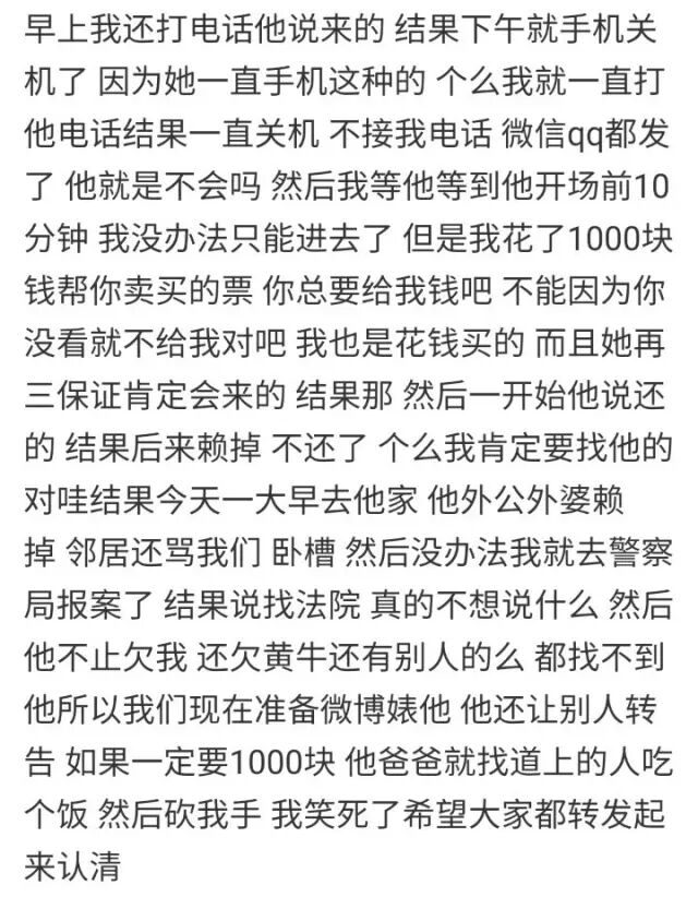 小扒发现去年在微博上就有揭穿她恶行的贴子。大概是她找别人代买了张艺兴生日会的票,但是她自己却赖账爽约了,最后还搬出了黑社会扬言要砍了网友的手。