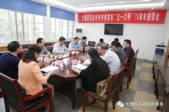 4月28日下午,大通区纪念中共中央发布“五一口号”70周年座谈会在区政协会议室召开。区政协主席胡雷出席会议并讲话。区委常委、宣传部长、统战部长焦伟主持会议。区人大常委会副主任张天舒,区政协副主席陈永强、宫俊,区政协八届副主席夏学琴,各民主党派主要负责人、工商联主要负责人和无党派代表人士参加座谈。