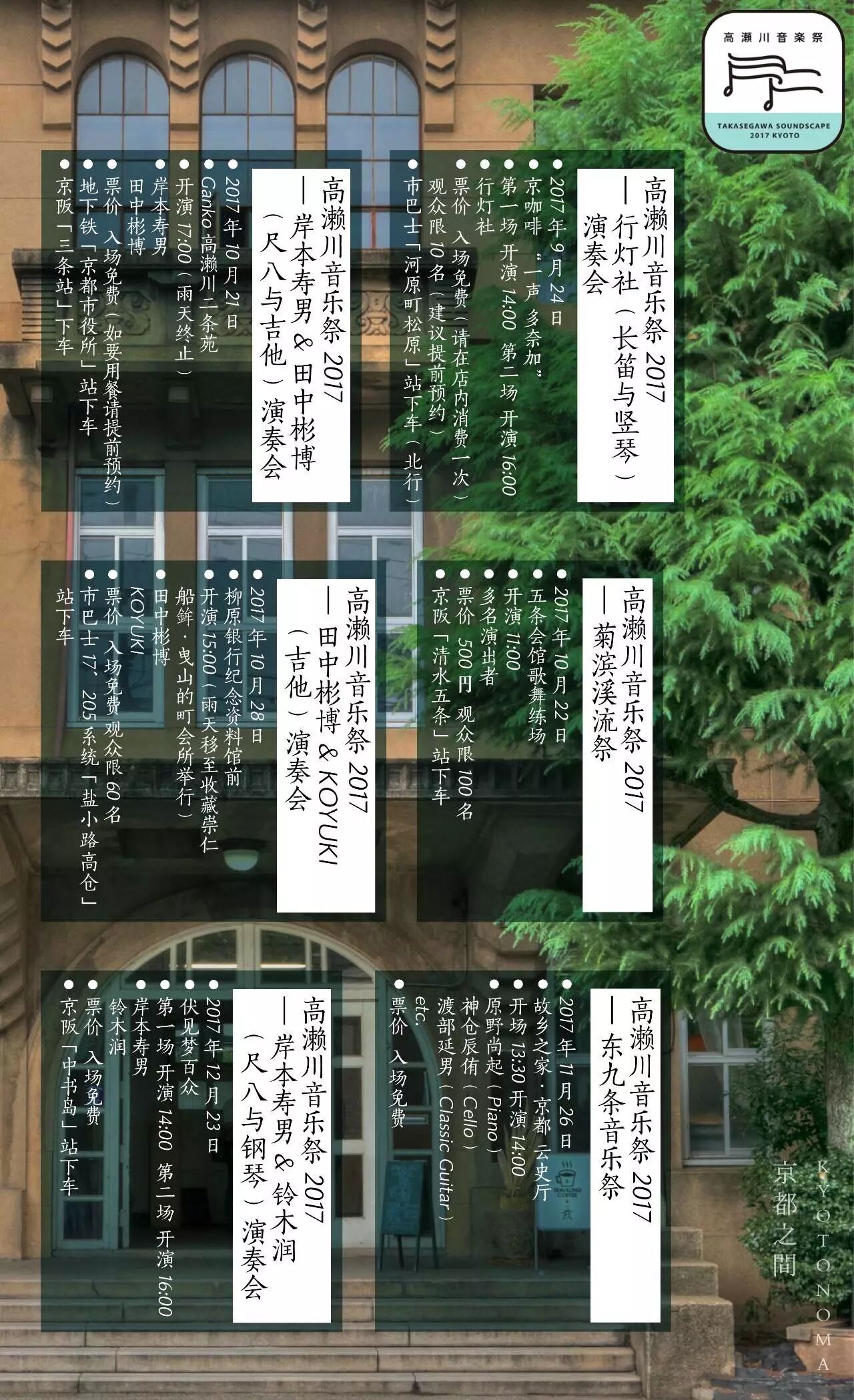 一个城市的文化兴起,往往离不开河川的哺育滋养。2014年以纪念高濑川开凿400年为契机,沿岸的居民集合起来,将高濑川的历史建筑和特色文化借音乐祭的形式鲜活示人。以往因为河水维系起来的这块区域,如今因为音乐而再次联系起来。今年是第四届,依然是各具特色的七大会场,从8月持续到12月,就像是街巷中的庶民聚会,可以近距离倾听尺八与钢琴的合奏飘荡于高濑川之上。