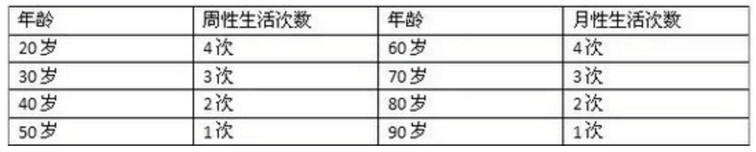 美国性学专家在中国组织的一次性学论坛上公布了一个公式,用来计算各个年龄段的性生活指标。