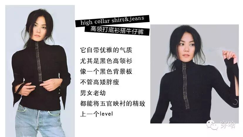 ☆造型二:高领黑色针织衫