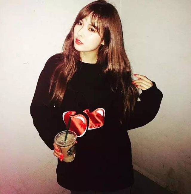最常出现的宽松卫衣,还是卡通图案的,配上长发帅气里透着小性感。