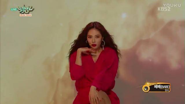 红衣现场也是很惊艳了,不同于上面的小清新式性感风格,这件红色衣服一点儿也不露,甚至不修身,但却让泫雅看起来风情万种。