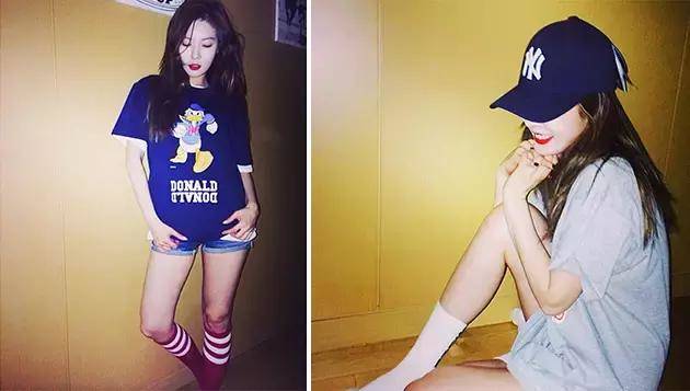 另一个泫雅的穿搭重点就是袜子啦~直直的美腿配上袜子更性感,加上宽鬆的t shirt性感浑然天成!