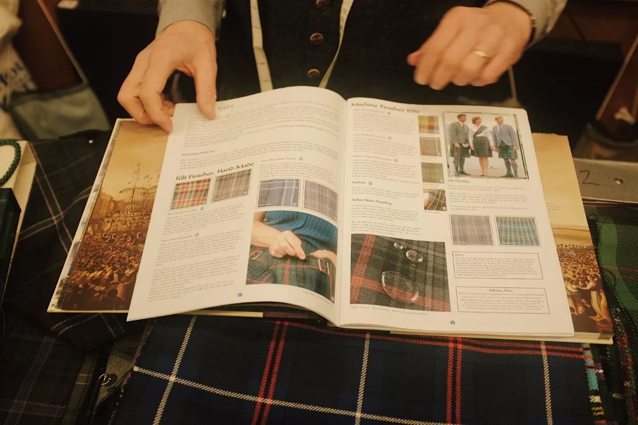 从前的有钱人和名门望族会参与设计属于自己的格纹,那些量身定制的格纹会以当事名,我仔细翻阅,好像的确能从颜色和组合里一窥主人的性格。有趣的是,这是唯一一家保有世界上所有苏格兰格纹图案的小店。