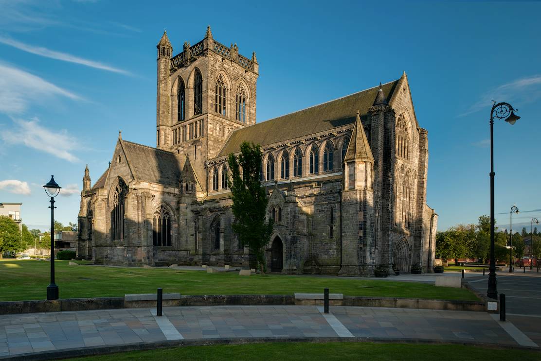 初见佩斯利小镇,市中心干净而整齐,主要地标都聚集在此。佩斯利修道院是人们祷告、集会、唱颂歌的地方。建于1163年,旁边就是市政厅,然后是一条穿城而过的小河。