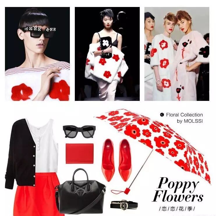 罂粟花系列有红和黄两色,是MOLSSI最畅销的款式,绽放的罂粟花彰显女性的浪漫柔情,告别小清新,大胆热情的风格定义都市女性新形象。