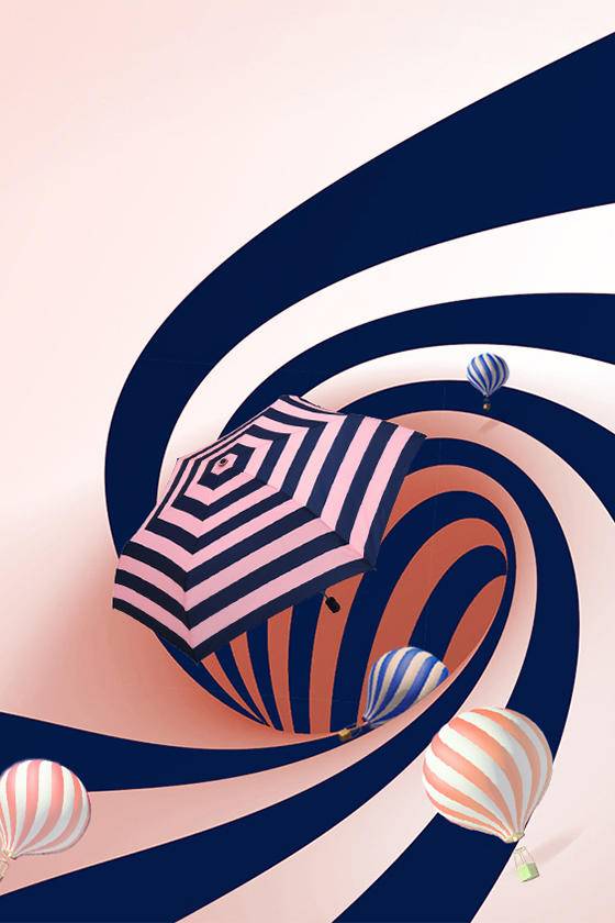「光影」与「视觉」的双重幻觉游戏,韵律感的组合线条流动于伞面,如梦似幻、既虚也实,在神经末梢掀起亢奋的骚动,在错乱的视觉中体现意境之美。