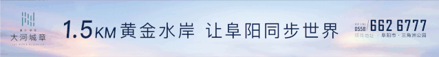 2019年,富力携手皖投置业幸会阜阳,择址三角洲城市中心,以先进的国际CBD运营理念,为阜阳敬献『大河城章』——1.5KM黄金水岸豪宅,致力打造阜阳人居标杆,融合约18万方滨河文化公园、万豪国际酒店、18班精英幼儿园,24班育新小学(大河城章分校)、6万方星光里商业中心、160米甲级写字楼、约5000平米社区文体中心、以及高端国际住区于一体,为阜阳城市发展赋能力量,也为这座城市带来了焕然一新的国际化都会生活方式。
