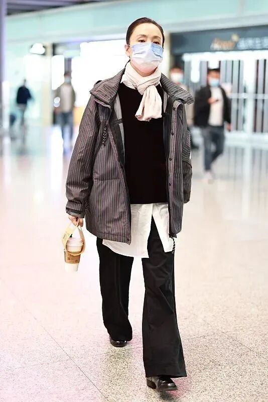 陶虹穿着这样的一件大衣,款式真的是非常的好看的呢,几次她都穿着大衣走机场,而且都是里面穿的特别的随意的,里面穿的就非常的普通而且还有点俗气呢。