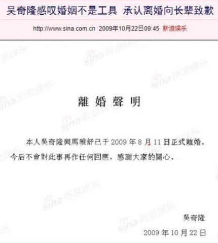 吴奇隆:我和妻子结婚2年,同房不到5次…… 今日名场面 港台男星 2020-09-25 10:44:24 805 创作不易,用心坚持,欢迎请BaGua喝几杯爱心咖啡!打赏并支持本文 打赏并删除本文 今儿来唠唠吴奇隆的猎艳情史。1987年,刘诗诗在北京出生,这一年,17岁的吴奇隆正在台中体育专科学校(现台湾运动大学)读书。此时的他已经是获得23个冠军及135枚奖牌的跆拳道选手。17岁的少年,唇红齿白,意气风发,很受小女孩欢迎。一位短头发,相貌平平的女孩子坚持每天给他送早餐,不久之后,两人就在一起了。有次骑摩托车约会时,两人还情不自禁的亲吻。emmm……这算是吴奇隆的初恋了。此时的他跟演员歌手还风马牛不相及。至于为什么他会从事演艺行业,这还要源于1988年夏天发生的一件事。当时的吴奇隆帮家里在夜市摆摊,一个陌生男子连续两天来到他的小摊前,两天都没买衣服,只是盯着吴奇隆看。第三天,陌生男子依旧来看吴奇隆,从上到下打量他许久之后,男子突然开口说,他是星探,最近有个节目吴奇隆特别合适。刚开始吴奇隆完全没当回事,就留了他的电话给星探。没成想,这个星探每天都往他家里打电话。一来二去,就和吴奇隆的妈妈聊熟了。最后,吴奇隆妈妈就跟儿子说让他去试试。于是,吴奇隆就一头雾水的踏进了娱乐圈。机缘巧合,他和15岁的苏有朋、17岁的陈志朋一起组成小虎队在综艺节目【青春大对抗】做助理主持。半年后,三人组成的助理主持比大主持队还受观众欢迎。于是,飞碟唱片果断签下了三人。紧接着就让他们和同公司女子组合忧欢派对一起合录一张专辑。后来,这张专辑大卖40万张。收录在专辑里的单曲【青苹果乐园】更是火爆大街小巷。19岁的吴奇隆火了。然而,他的小女友却和他分手了。他想不通自己做错了什么,深陷痛苦。大他两岁的忧欢派对组合中的忧忧蔡雨伦时时陪伴在他身边。没过多久两人就擦出爱情的火花。两人沉浸在甜蜜的爱情里不可自拔,也没有在外刻意回避。吴奇隆的粉丝知道后,不能接受这段恋情,认为女方配不上男方。于是就在忧忧外出时,将她打伤。事件愈演愈烈,经纪公司出面公关。并开设禁令,明确禁止公司艺人谈恋爱。两人慢慢没有了交集,吴奇隆的爱情再一次无疾而终。祸不单行,吴奇隆爸爸生意失败,欠下了天文数字般的巨债。吴奇隆每个月要还的固定债务就高达20万元人民币。很长一段时间,他每天都要工作20多个小时,只要赚钱什么戏都接。有一次,吴奇隆连续工作七天七夜,哥哥来接他回家。车上他跟哥哥聊天,脸上笑着,眼泪却哗哗向下流。好在,那几年小虎队发展势如破竹,专辑销量屡创新高,吴奇隆的人气也一直居高不下。后来苏有朋考上台湾大学机械工程系,陈志朋入伍服兵役,小虎队就解散了。吴奇隆单飞开始了个人演艺事业。先后推出几部作品后,就和苏有朋、金城武、林志颖并称台湾四小天王。也是在这个时候,吴奇隆恋上了16岁的徐若瑄。彼时的徐若瑄还是组合少女队的成员。有一天去吴奇隆家中做客。天气炎热,吴奇隆贴心为期准备了一杯冰水,顺便给了徐若瑄一个难忘的融冰吻。不过,这对相差5岁的兄妹恋,只维持了两年就以分手告终。据说是因为吴奇隆的妈妈不同意两人在一起。徐若瑄不堪打击,狂哭一整夜。受了情伤的徐若瑄开始进军影视行业。一心求火的她在拍了几部电影都没有水花之后,拍起了情色电影。后来还奔赴日本歌坛,出版了大尺度写真【天使心】。欲露不露的穿着,撩拨的眼神,暧昧的体位……让本写真红遍了东南亚,被台湾省的人们称为台湾宫泽理惠。红是红了,但在国内拍摄如此写真,就会遭受很多非议。也因此就堵住了和吴奇隆复合的后路。话说,和徐若瑄分手后,吴奇隆开始了全国巡演。唱片销量在台湾达到四白金,各大奖项拿到手软。1994年,吴奇隆和杨采妮合作电影【梁祝】,拍摄期间,两人传出绯闻。导演徐克声称,拍摄的时候,感觉他们两个人在谈恋爱,现场有很亲密的磁场。不过,吴奇隆从来没有公开承认和杨采妮交往过。后来,他又应征入伍,两人的恋情就不了了之。1998年,吴奇隆因伤病提前退役。1999年,29岁的吴奇隆遇到了蔡少芬,一个替父还债,一个替母还债,两人同病相怜,很快就走到了一起。蔡少芬小编之前写过了,确实不容易。她母亲为了还赌债将17岁的蔡少芬卖给大刘做禁脔。据不完全统计,大刘为蔡母还赌债高达上亿港元。后来,合约期满,蔡少芬离开大刘,但是其母亲依旧赌博。赌债越欠越多,蔡少芬苦不堪言,无奈举行新闻发布会,宣布和母亲断绝关系。也许是因为蔡少芬和吴奇隆都缺乏安全感吧,这段恋情也没有维持很久。2001年,吴奇隆拍摄【萧十一郎】时认识了女演员马雅舒。两人一见钟情,跌入爱河。同一年,吴奇隆终于还清了父亲欠下的巨额债务,无债一身轻的他更是全身心投入爱情。恋爱5年后,两人与2006年12月结婚。没有酒席,没有蜜月,但是吴奇隆送给了马雅舒价值六七百万的大钻戒。 但好景不长,婚后一年,吴奇隆就被拍到和女演员杨瑾华在ktv彻夜狂欢。随后,吴奇隆竟然公开自爆房事,声称和老婆马雅舒结婚两年,同房还不到5次。吴奇隆38岁,马雅舒31岁,正是如狼似虎的年纪,两年还不到5次……此话一出,吃瓜群众们都很好奇。紧接着,又有媒体爆出马雅舒和一外籍男子同住一间酒店客房,三天三夜没出门,中间吃饭都是助理送上门。新闻一出,立马引爆