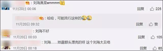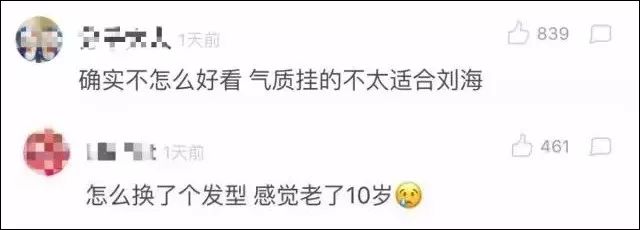当时大家对江江这个刘海造型的评价就不高,甚至觉得她看起来老了10岁。