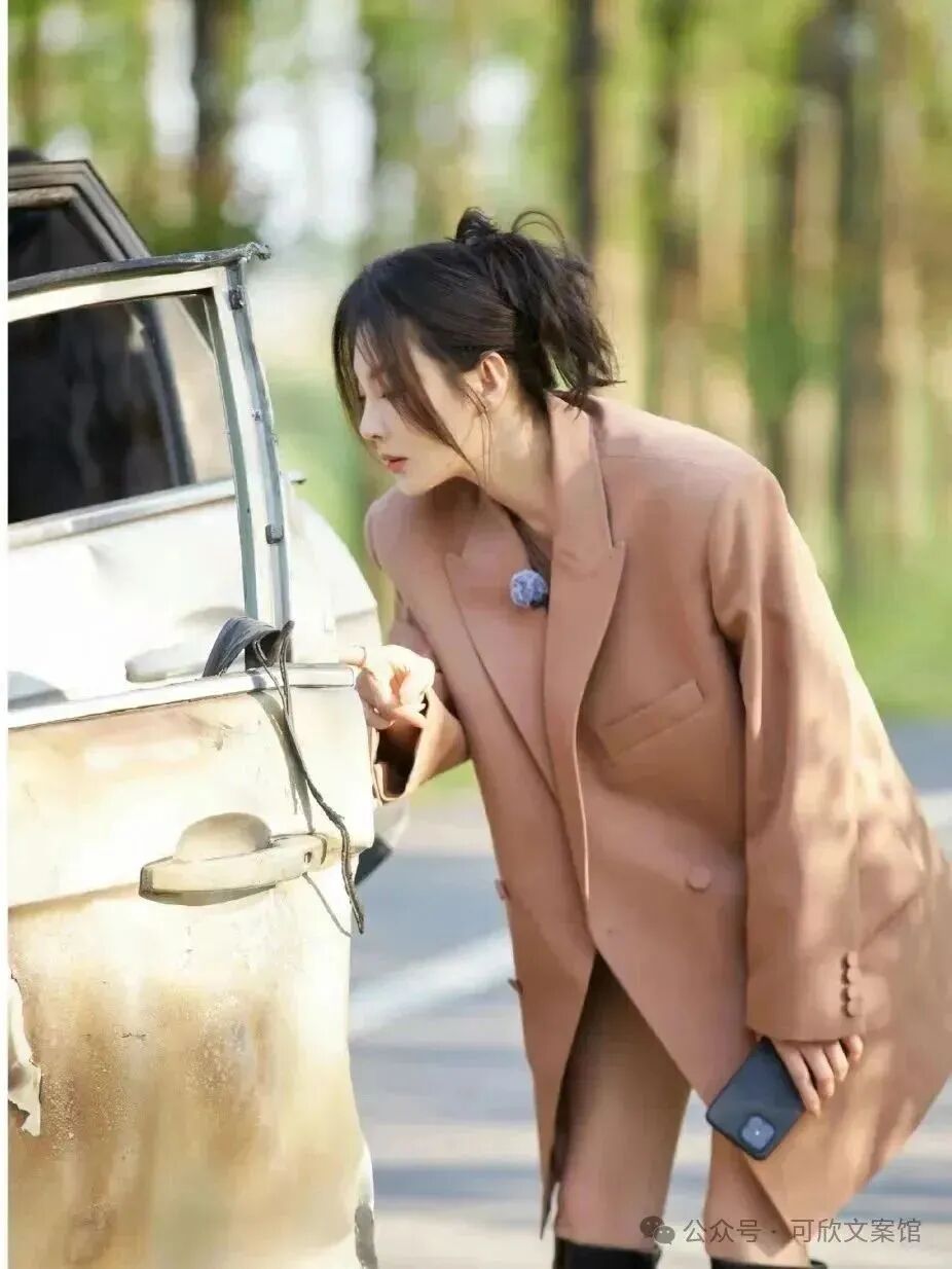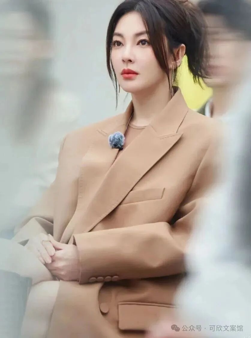 她常选择一件轻松休闲的大气外套,如那件经典的驼色西装,而内搭则是紧身衣物,比如那件紧致的驼色衬衫或T恤,完美展现了她的曼妙身材。