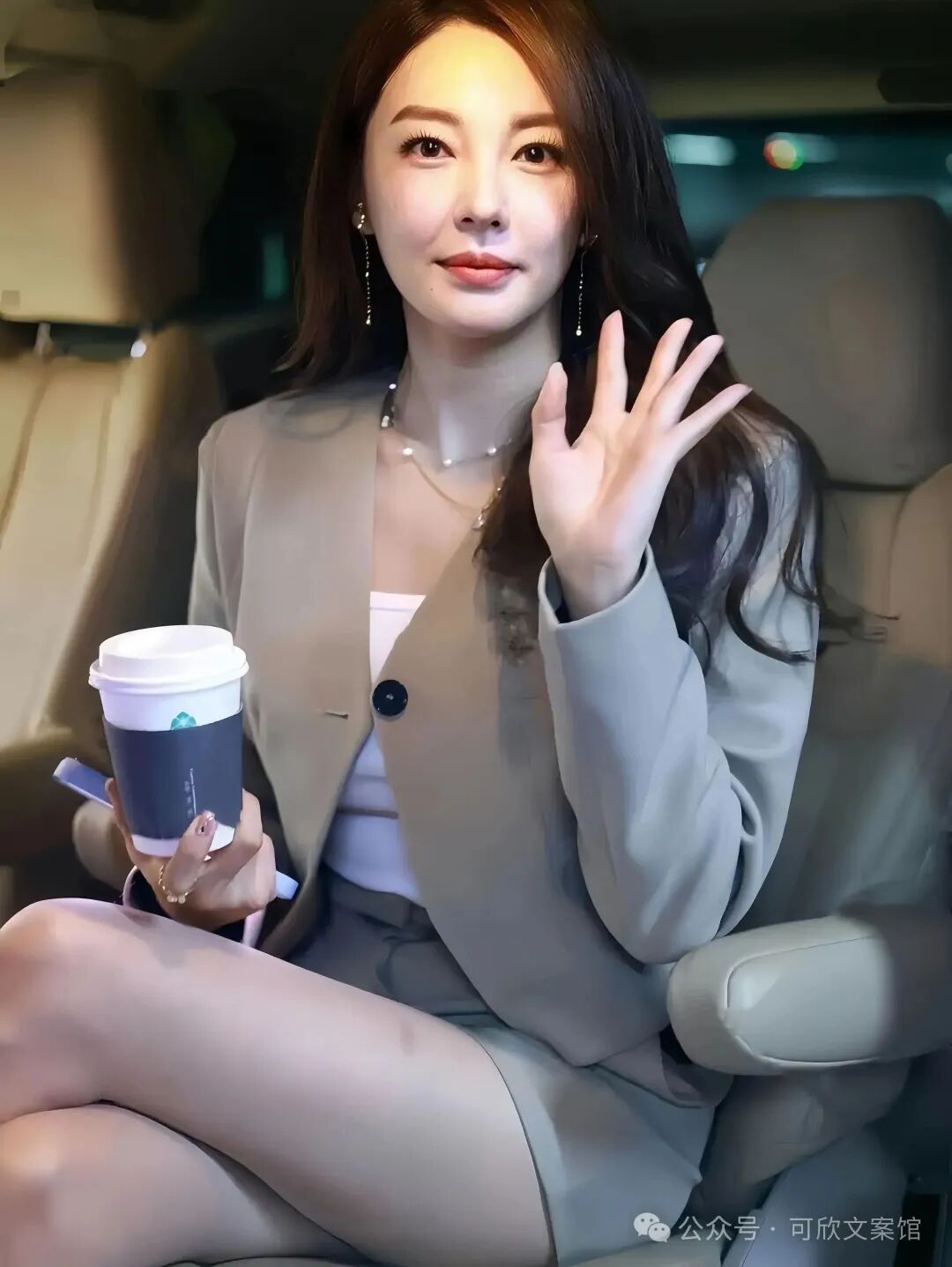 她的短西装不仅彰显了干练利落的风格,还兼具女性的柔美,而短裤则将她修长的双腿展现得淋漓尽致,为整个人增添了一份活泼灵动的气息。
