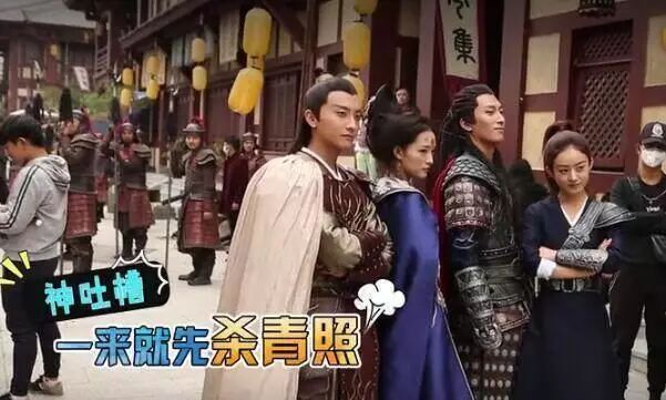 这个时候站在旁边的楚乔赵丽颖,默默地走到他们几个人旁边,一脸懵圈地问:你们在干嘛?李沁拉过赵丽颖说:我们在拍杀青照呢。摄像师还把他们刚拍的那些照片拿给赵丽颖看,说:看你一脸懵的样子。哈哈,真的太逗了~