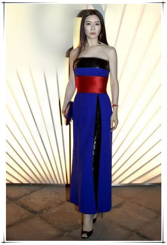 田海蓉在出席某活动中的穿着,真的是让人大肆称赞。她外面穿着一条红蓝色的抹胸长裙,这条裙子以蓝色为主色调,腰带设计的很宽大,而且是红色。蓝色和红色的搭配,是非常吸引人眼球的一种撞色搭配。一般人是很难驾驭的住的,但是这条如此大胆的衣服,穿在田海蓉身上却让人感觉不到一丝的违和。