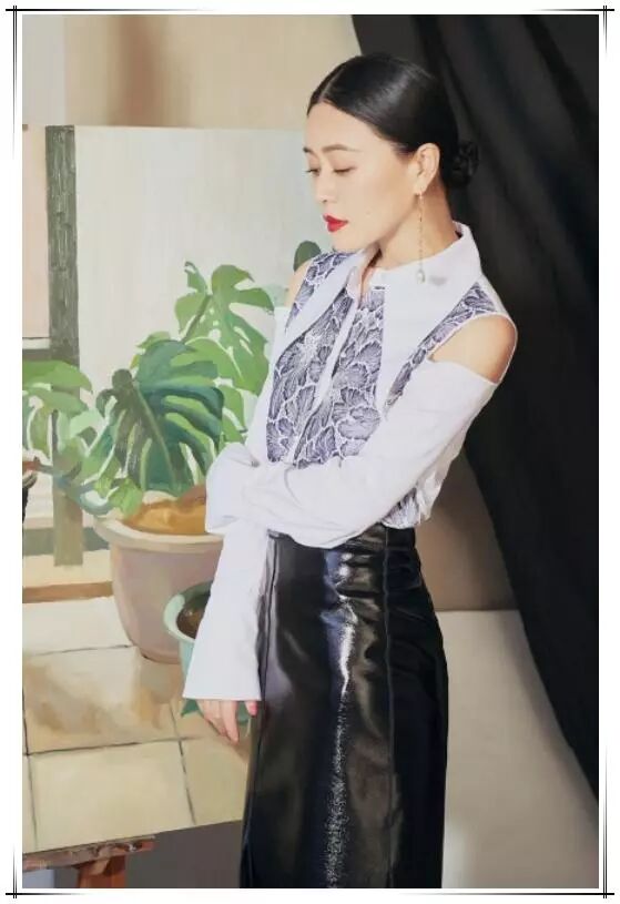 这套衣服,田海蓉就选择了很常见的黑白撞色。上半身一件白色长袖,不同于普通的露肩,它是在胳膊处打开了个口,既增添了性感,又不会显得过于暴露。而且我们再来看,衣服在肩膀和胸前印满了灰色的花纹,瞬时让整件衣服变的时尚感十足。下班身穿的是一条皮裙,收紧的腰部将衣服塞在里面,体现了田海蓉的完美身材。整套衣服再加上,田海蓉的盘发和妆容,尽显成熟女性的那种知性美,这种美在20岁的小女生身上是看不到的。