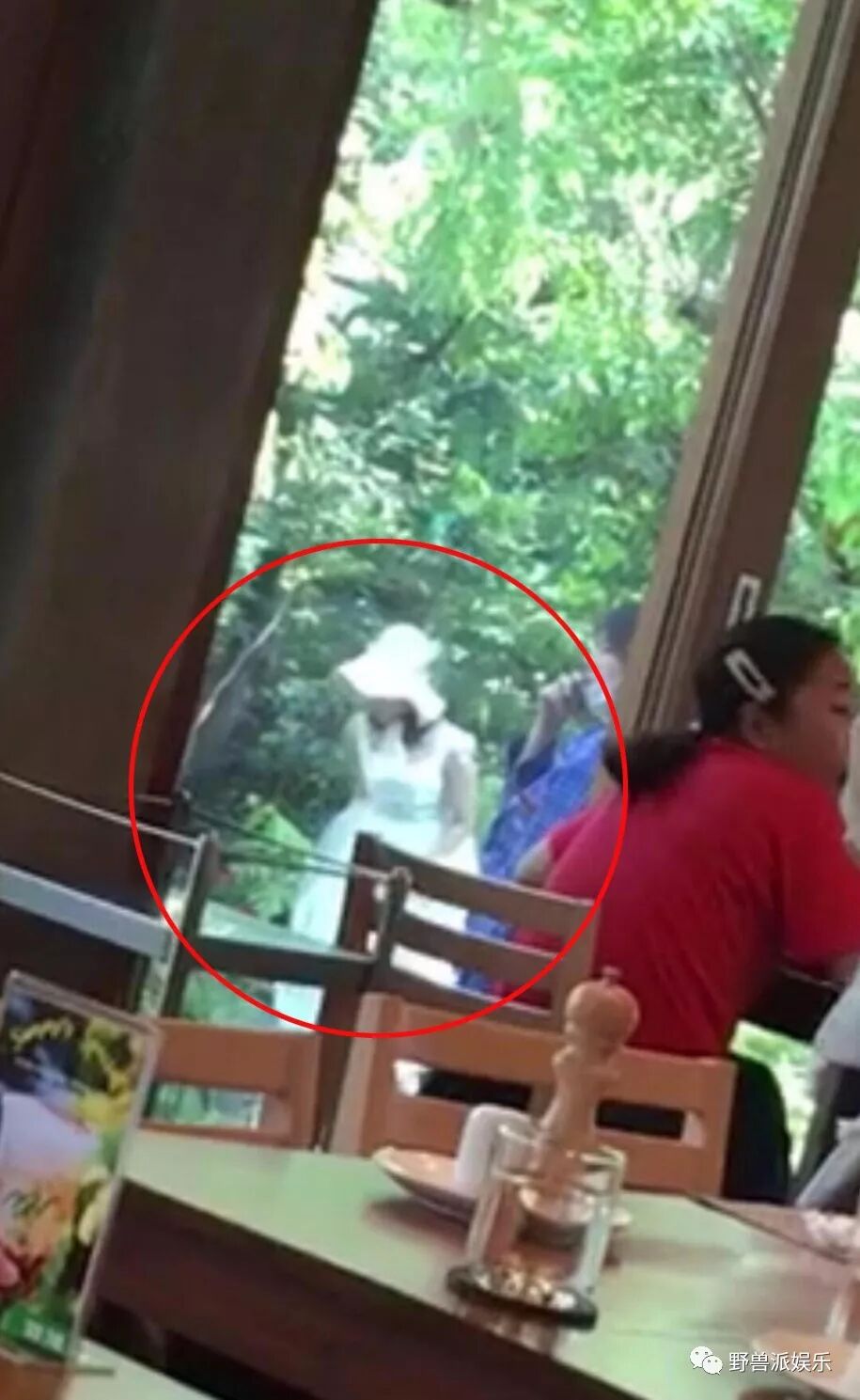 沈月被网友发现在某餐厅外面。