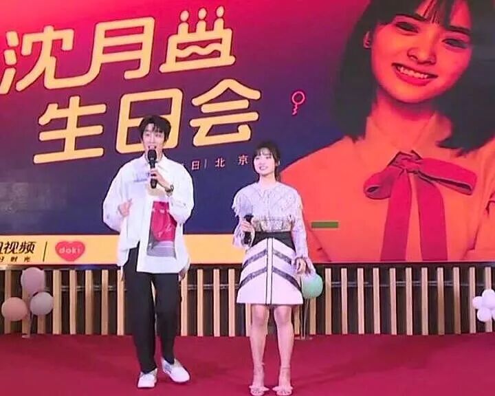 网友找出当日生日会的图,表示真实的沈月其实是这样的↓身高体型并不协调……