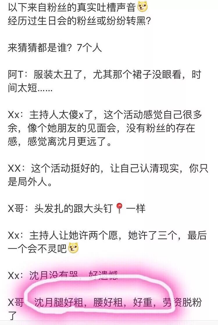 前阵子沈月举行了生日会。据网友爆料,参加这场生日会的有43个粉丝,其中有7个粉丝回来后闹着要脱粉。
