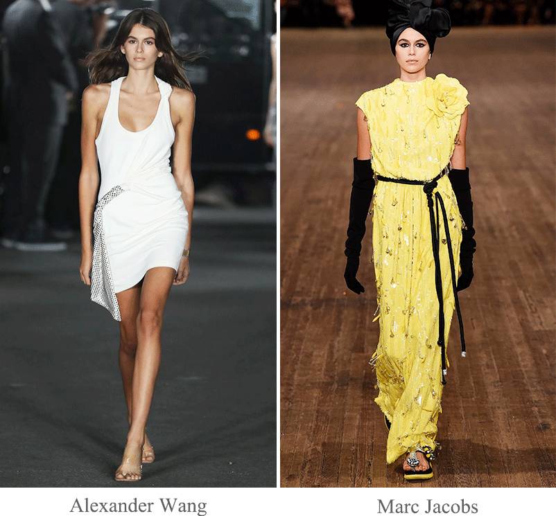 2、刚结束的纽约时装周,Kaia Gerber无疑是最大的赢家!刚满16岁的她首次踏上时装周,就一口气为5个品牌行秀。