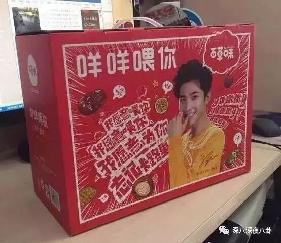 送吃的不止是黄晓明,杨洋也想到了,他去年春节时送出的礼物是零食礼盒,包装上还写着“我愿意喂你”的字眼,让很多粉丝大赞暖男。