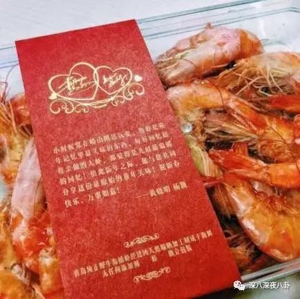 去年春节时,黄晓明夫妇拿真正的青岛大虾做礼物,一盒大虾足有20只,按38元一只的价格计算,绝对是土豪级大礼包。