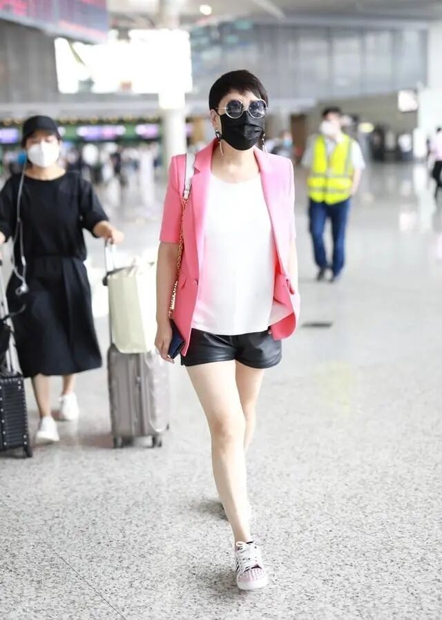 作为60后时尚扛把子的张凯丽显然把机场当秀场,机场look也要超时尚。57岁的张凯丽用粉色短袖西装搭配黑色皮质超短裤,时髦感超强的造型十分惊艳。缎面材质的粉色短袖西装自带光泽感,搭配酷帅的皮质短裤更显得贵气又前卫,60后在时尚表现力这方面完全不输于00后,每个年龄都有各自的美。