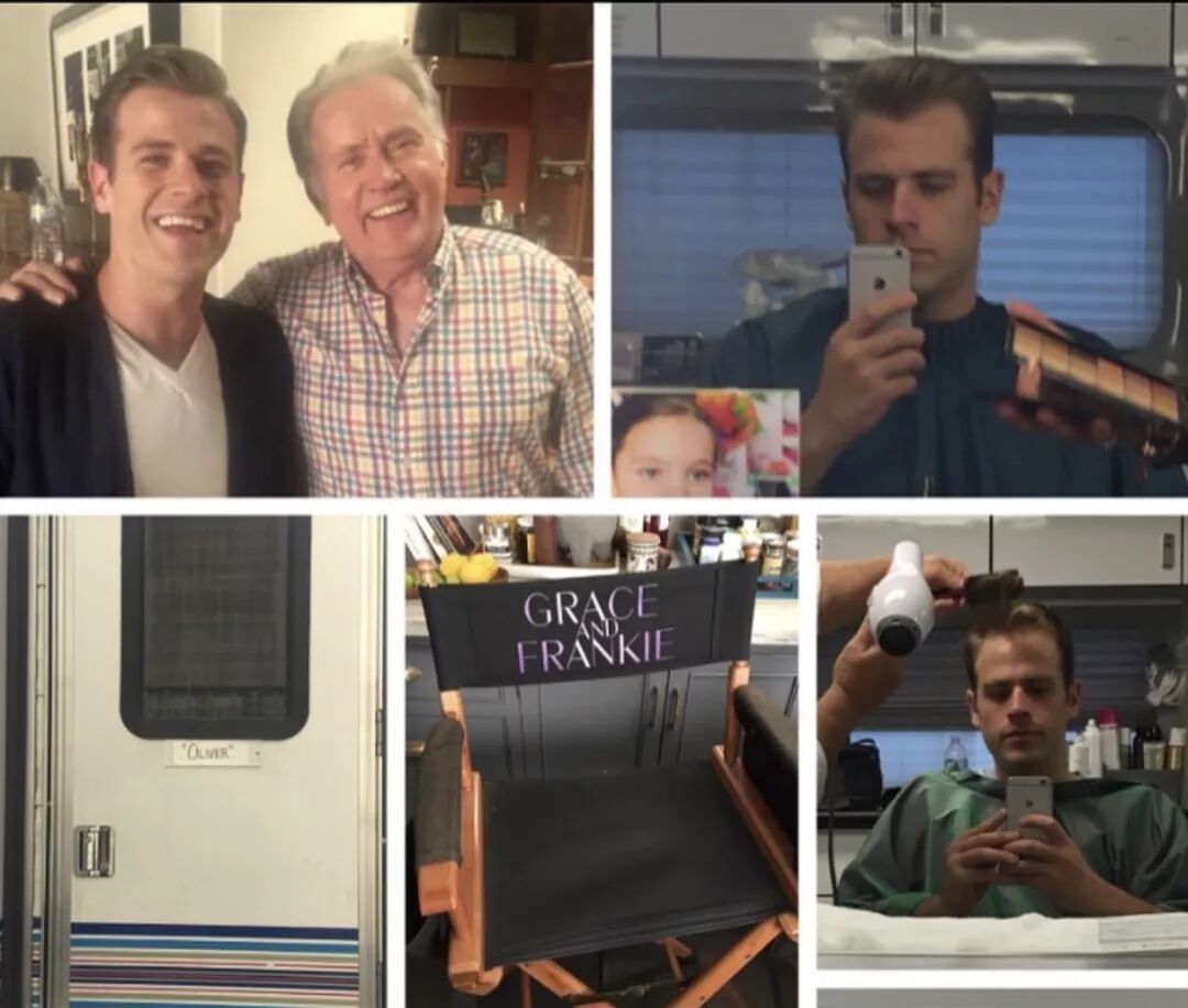 在他IG发出的片场照片也可以知道他也在参与,Grace and Frakie的拍摄中。