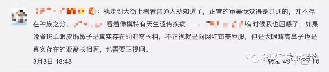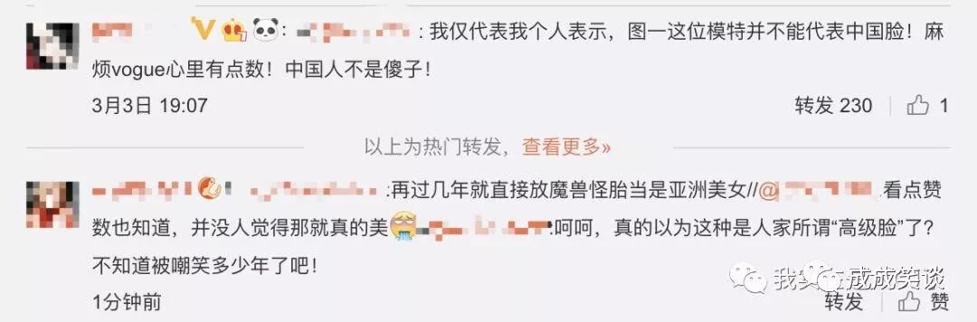 国内有大V搬运了这张照片,说这是“主推的中国脸模特”,问网友这是“高级脸”还是
