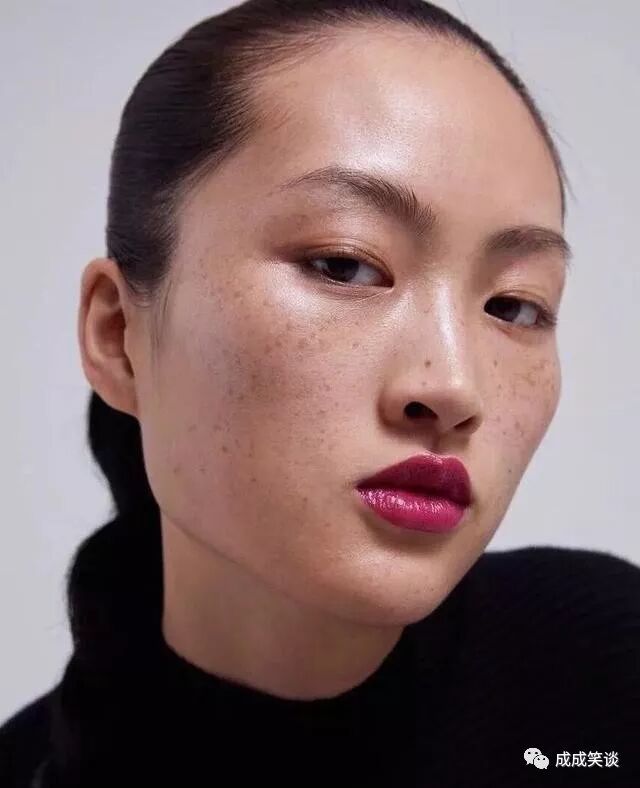 只是图里她头发紧紧扎到脑后,几乎没有任何碎发来修饰脸型,皮肤偏黄黑还有很多雀斑,而且眼睛看上去也不太有精神……