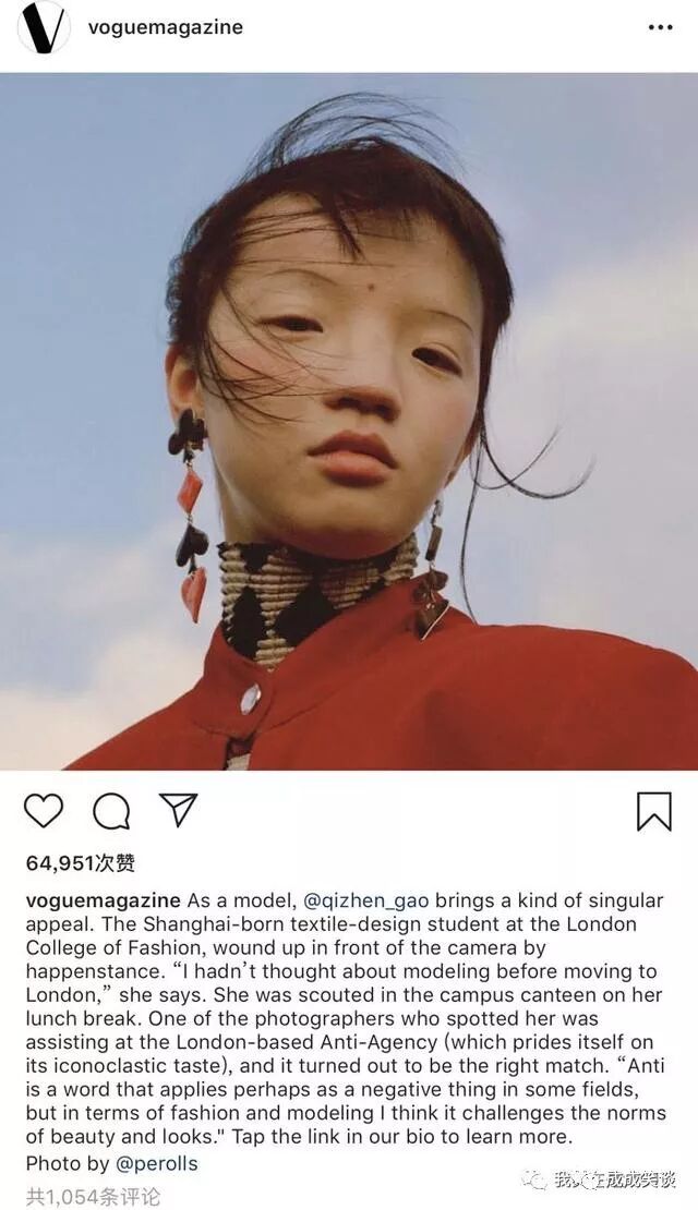 这和大家印象中的美妆大片完全不一样,而《VOGUE》的官方ins前两天发了一张中国女孩Qizhen的照片。更是引发网友吐槽不断。