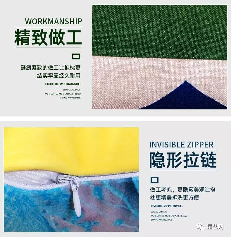 星艺网的衍生工艺品“抱枕”系列,3个规格2种面料选择,¥68.00起