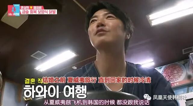当时尹相铉吐槽妻子打呼声音太大,结果妻子反驳了一通还生气了。于是尹相铉在第二天的时候就把妻子打呼的声音录下来了,就是想让对方承认睡觉会打呼,没想到Maybee更生气了,两个人一直到回来了都还在冷战。