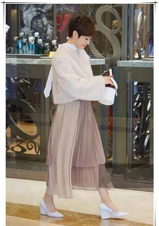 一身素雅的穿搭十分的有范儿,这气质完全看不来她的真实年龄呀,女神就是不一样,不论什么时候都美的让人羡慕不已,短款的外套十分的别致精干,而且充满少女感呢。瞬间甜美加分。